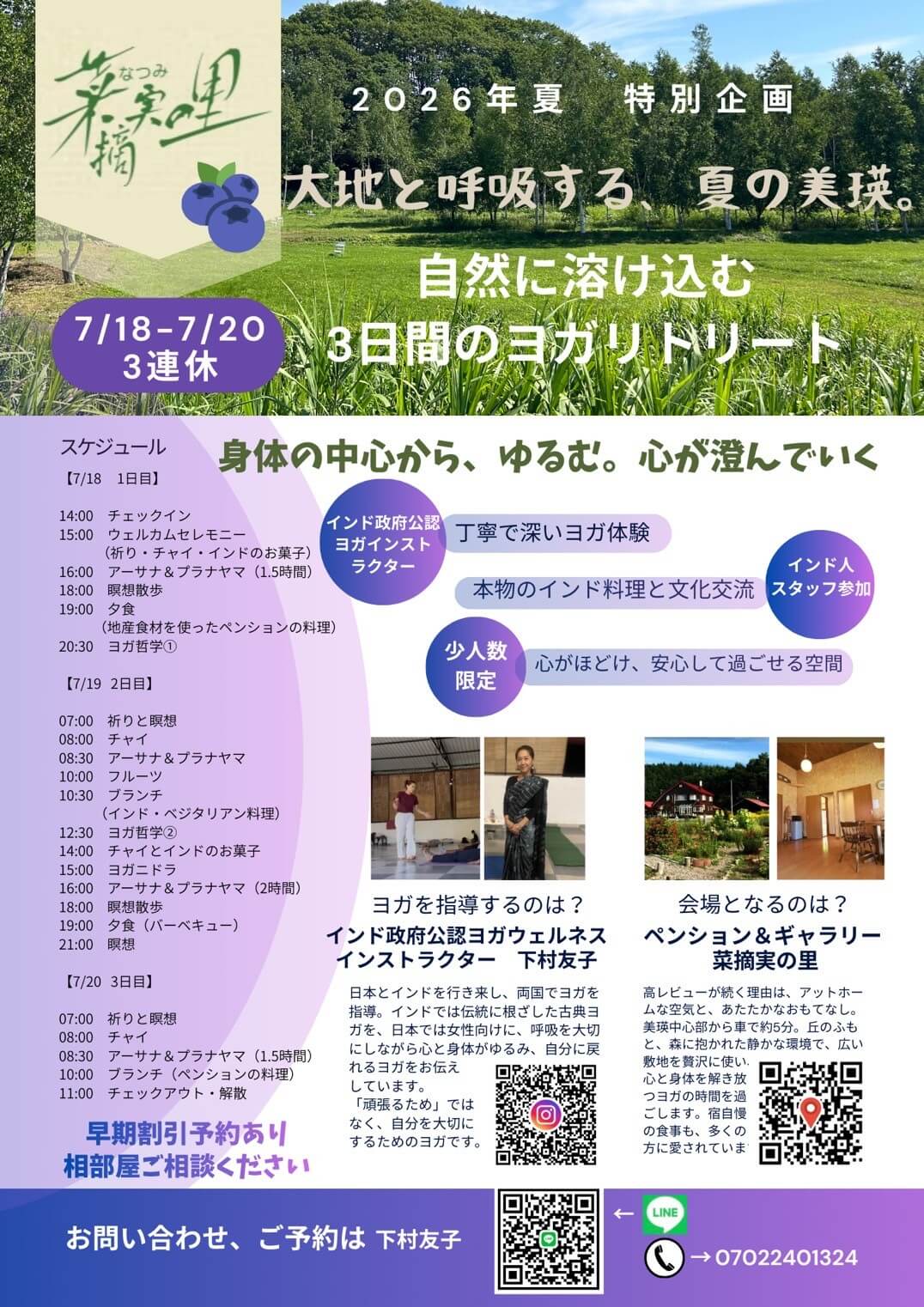 2026年の夏の特別企画として、ヨガリトリートを開催いたします。